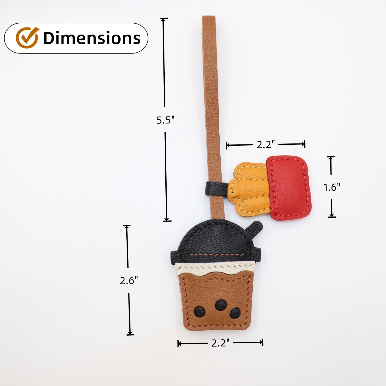 • HANDCRAFTED DESIGN: Charming bubble tea cup and french fries duo made from genuine leather with detailed stitching and multi-color elements