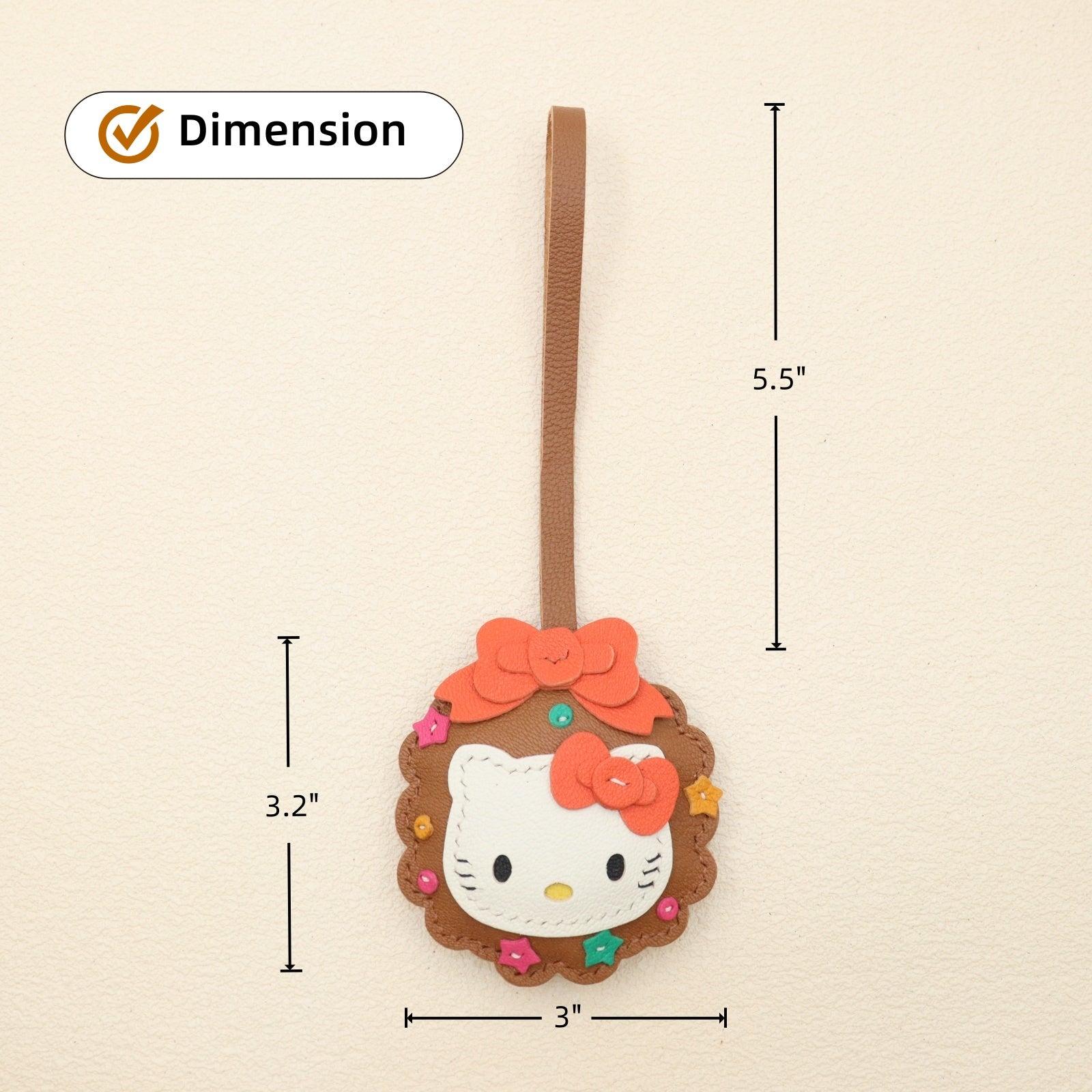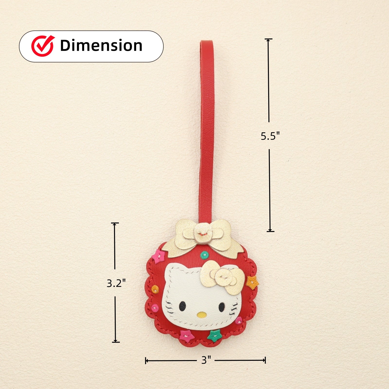 HANDCRAFTED DESIGN: Adorable kitty-themed bag charm delicately handcrafted from premium goat leather with detailed stitching and decorative elements.