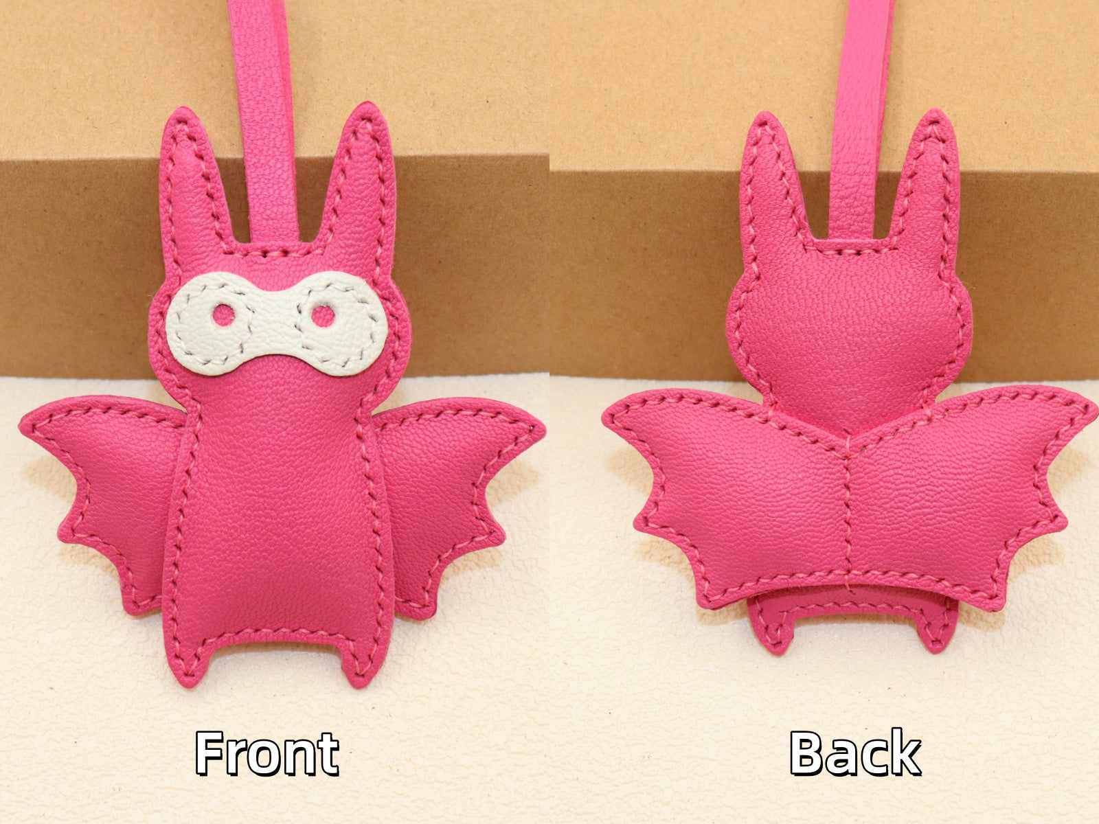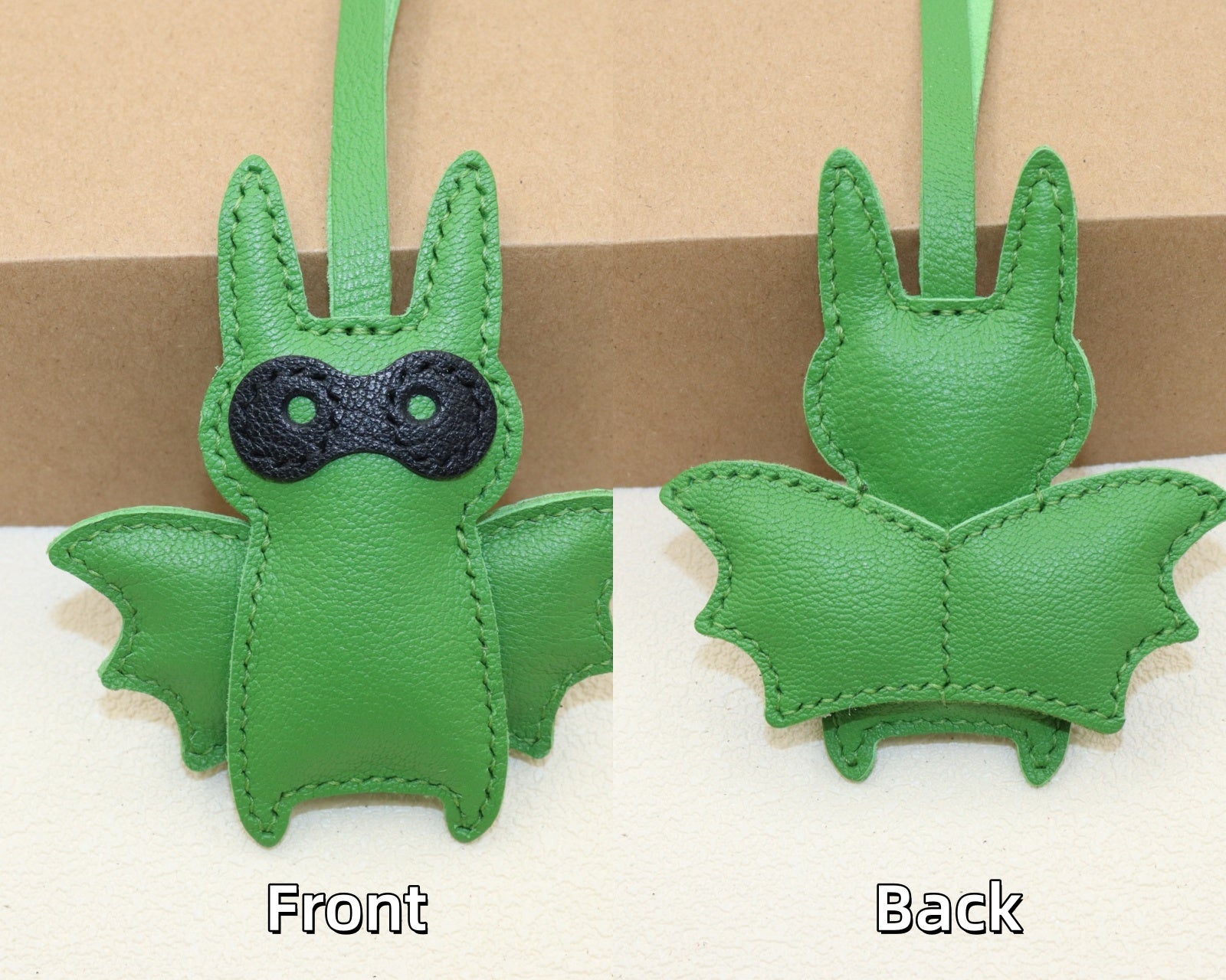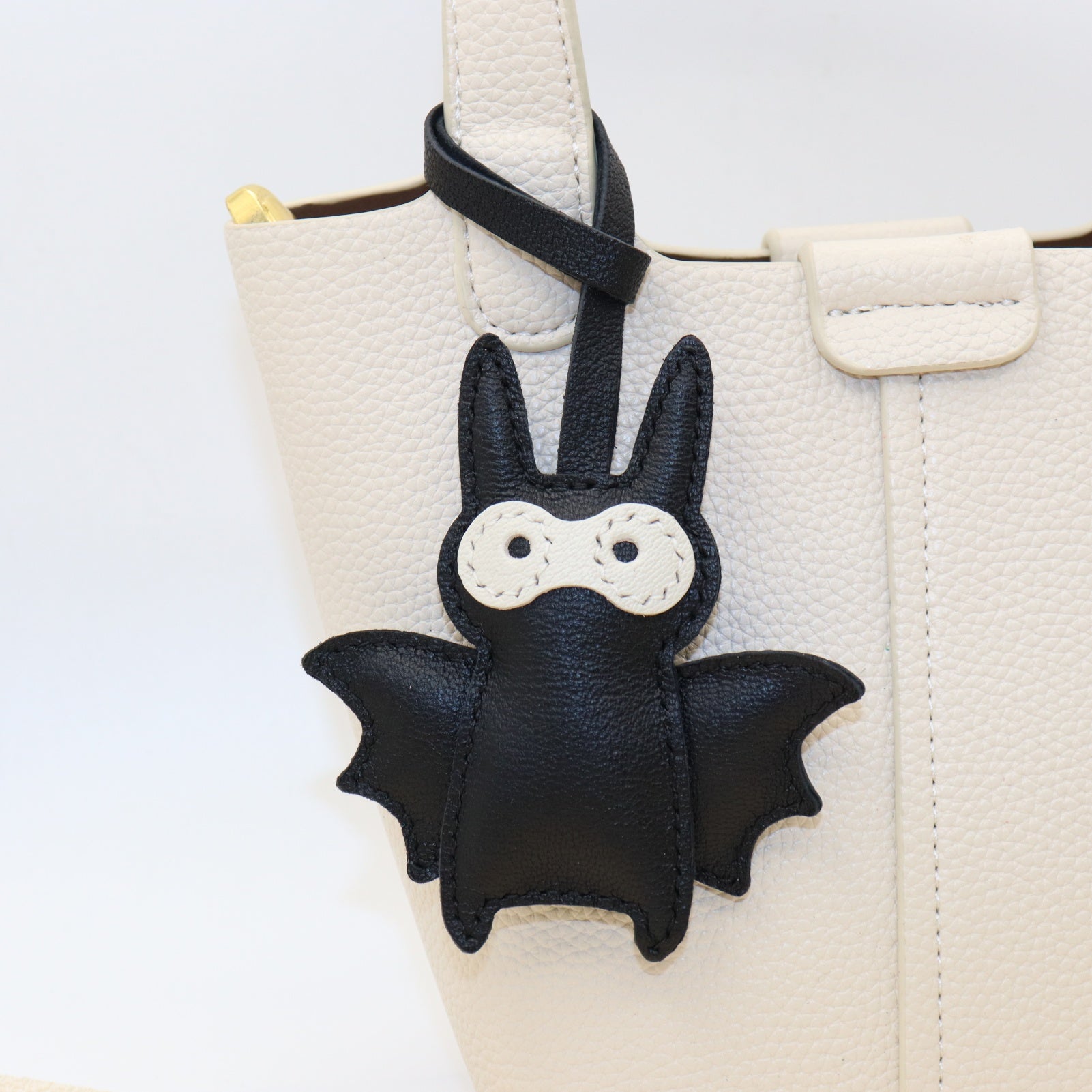 - HANDCRAFTED DESIGN: Charming bat-shaped bag charm made from premium French goat leather, featuring detailed stitching and adorable mask-like accent.